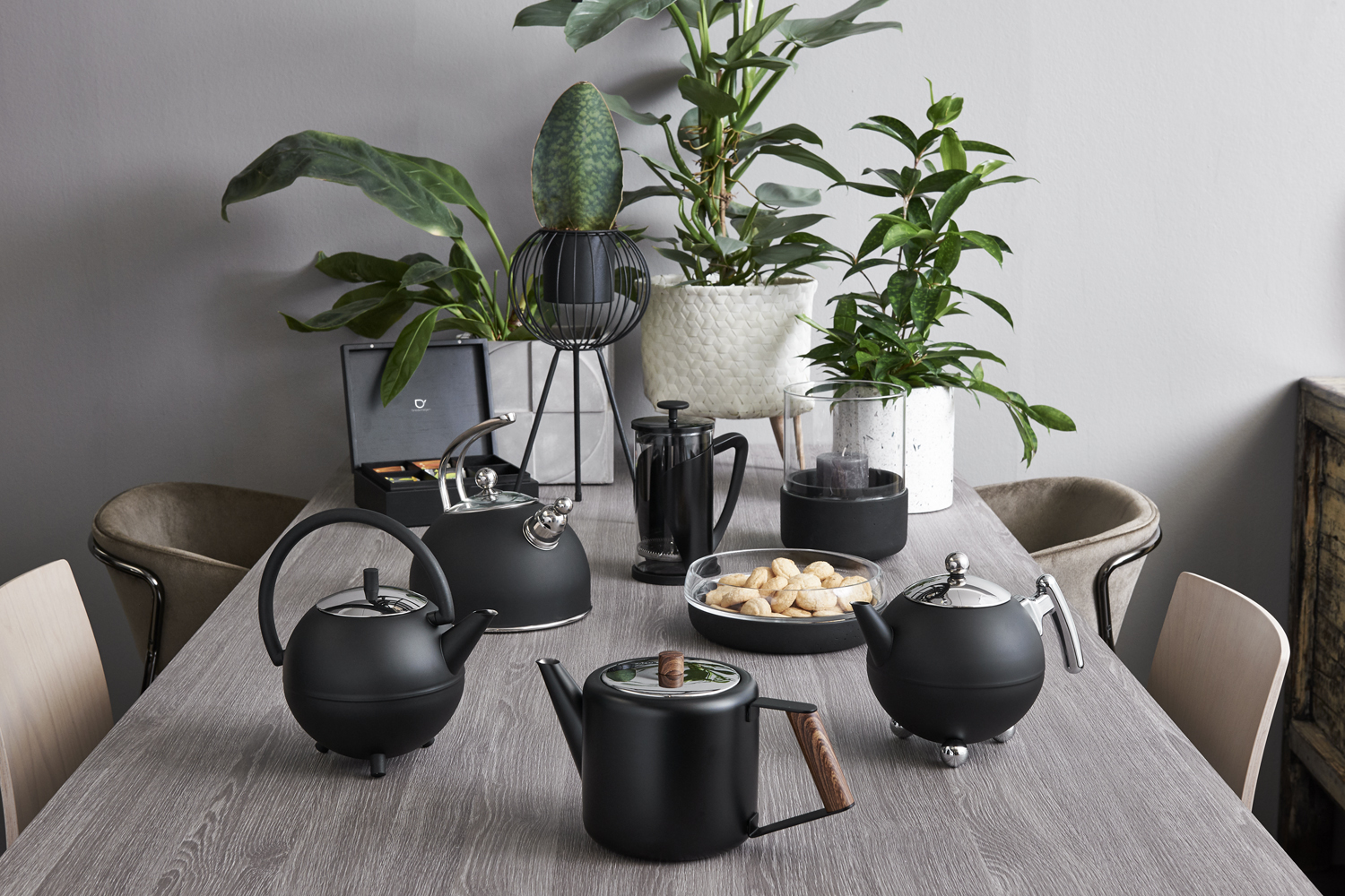 Edelstahl Teekanne Duet® Design Saturn - 1,2L , schwarz matt
